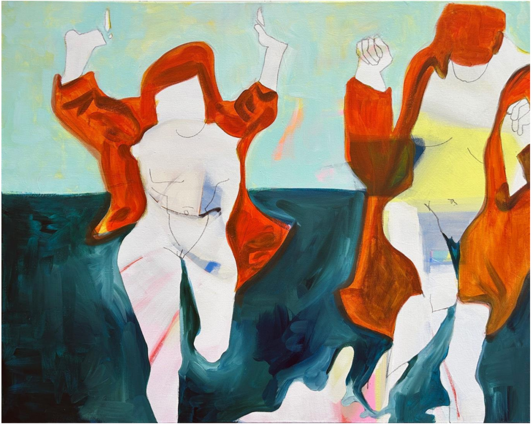 Wren: I am neither [smiles]. The figure is my lover, my partner, on a night we ran together naked into the snow. It was a full sensory experience of play and excitement. This painting is a moment of ALIVENESS. Of getting out of the way of whatever is standing between you and your euphoria.